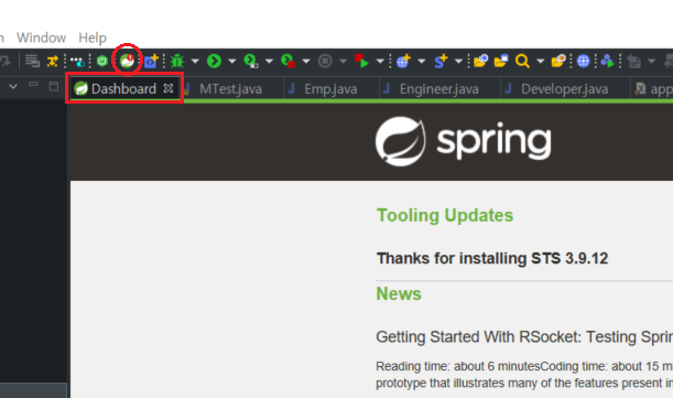 4. 마지막으로 재시작을 눌러주면 끝! 스프링 프레임워크 대시보드가 추가된게 보이면 성공이다.