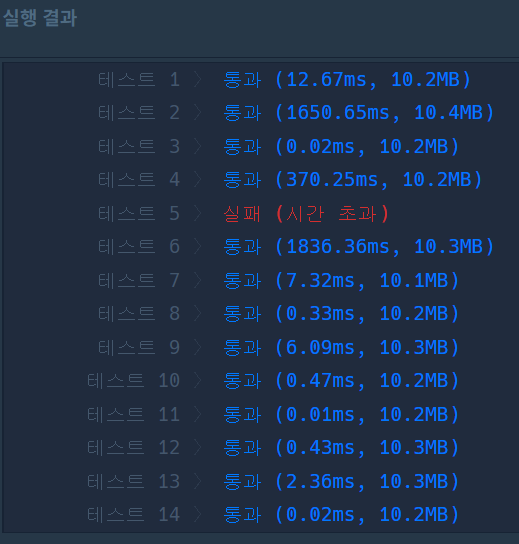 시간 초과가 발생했다. deque의 popleft를 사용하는 것이 pop(0)을 사용하는 것보다 실행시간이 빠르다고 알고 있어서 변화를 줘봤다. 하지만 시간 초과가 나왔다. 시간을 효율적으로 사용하는 부분도 생각해 봐야겠다.